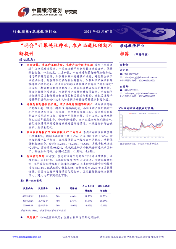 【银河证券】【20210307】20210307-中国银河-农林牧渔行业周报:“两会”开幕关注种业,农产品通胀预期不断提升-20页