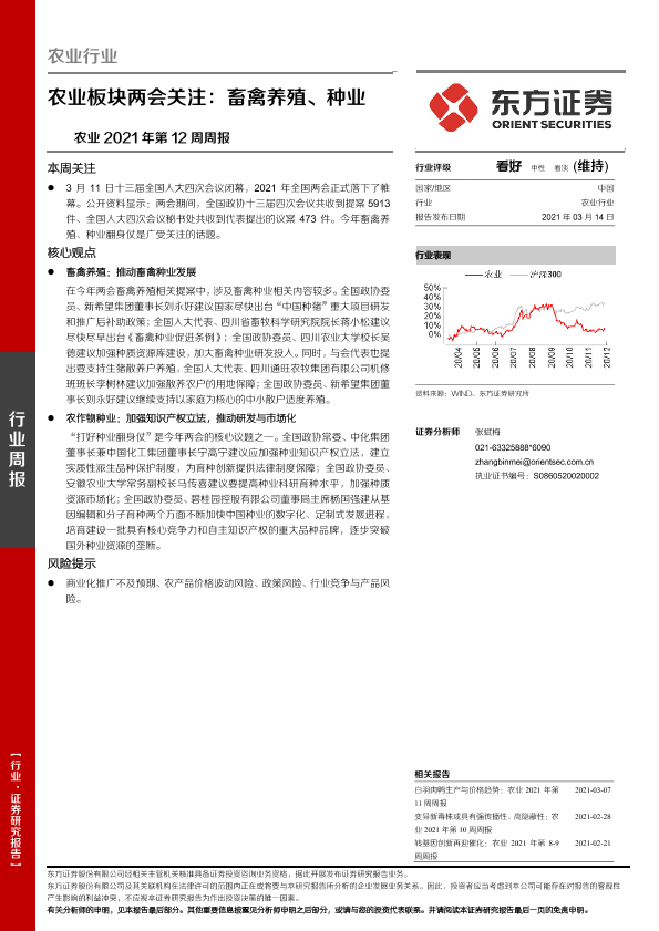 【东方证券】【20210314】农业2021年第12周周报:农业板块两会关注:畜禽养殖、种业-9页
