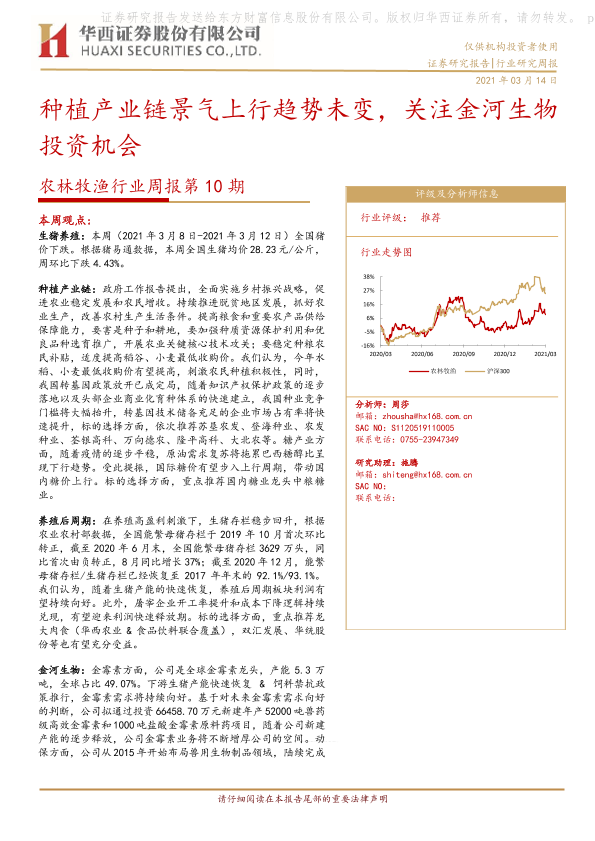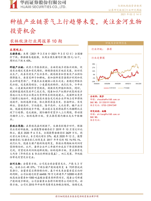 【华西证券】【20210314】农林牧渔行业周报第10期:种植产业链景气上行趋势未变,关注金河生物投资机会-23页
