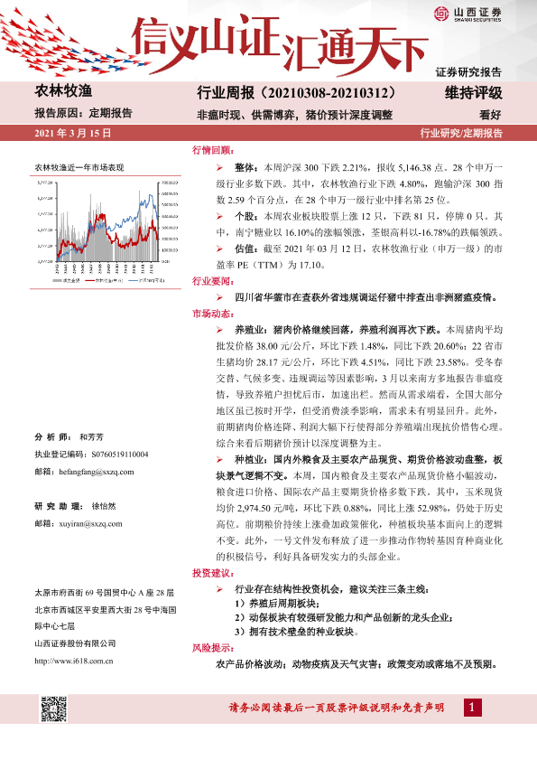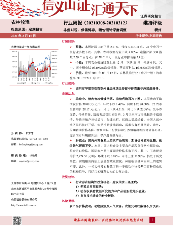 【山西证券】【20210315】农林牧渔行业周报:非瘟时现、供需博弈,猪价预计深度调整-14页