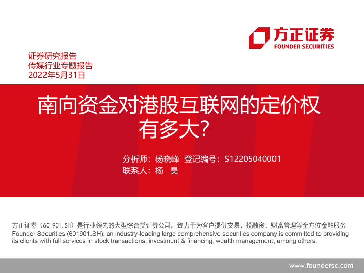 【方正证券】【20220531】传媒行业专题报告:南向资金对港股互联网的定价权有多大?-106页
