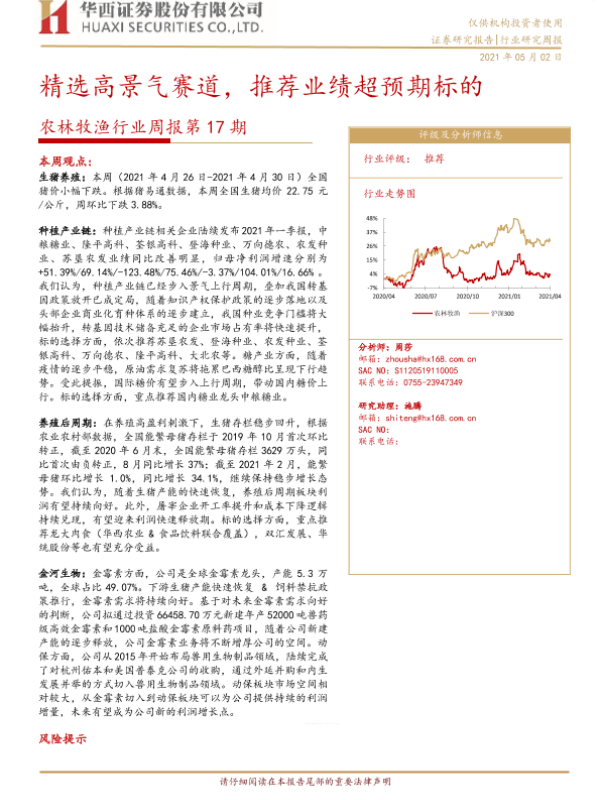 【华西证券】【20210502】农林牧渔行业周报第17期:精选高景气赛道,推荐业绩超预期标的-23页
