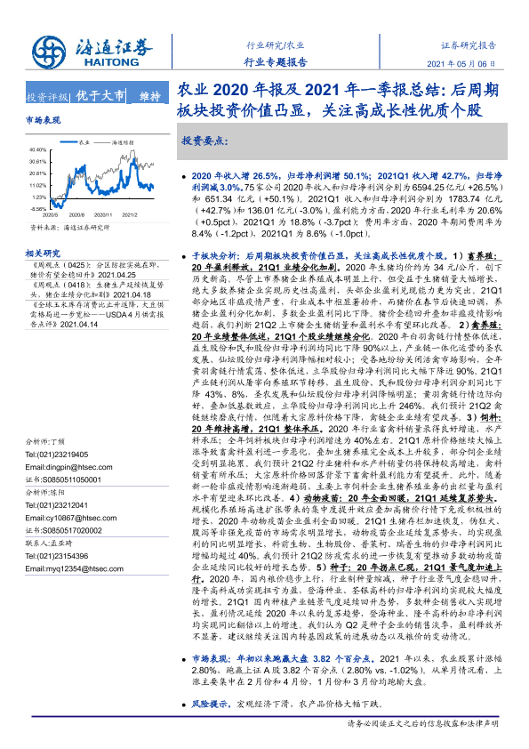 【海通证券】【20210506】农业2020年报及2021年一季报总结:后周期板块投资价值凸显,关注高成长性优质个股-23页