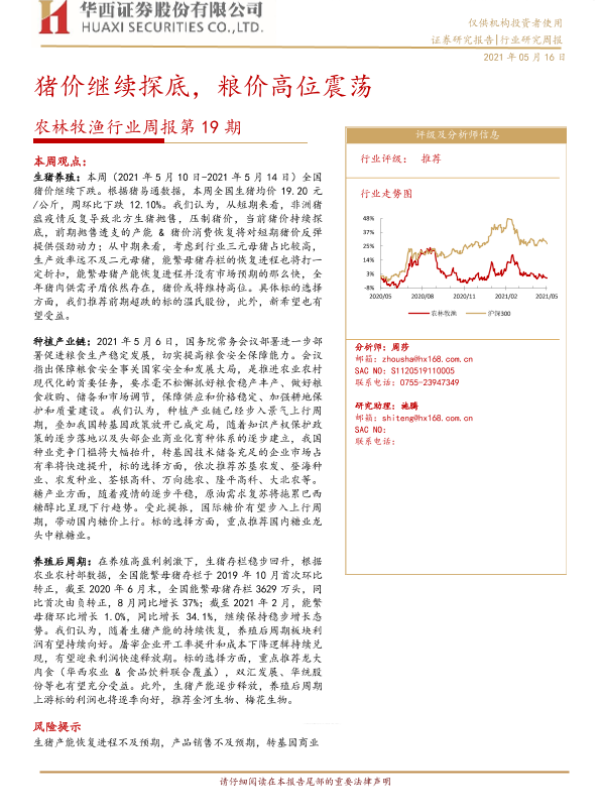 【华西证券】【20210516】农林牧渔行业周报第19期:猪价继续探底,粮价高位震荡-24页