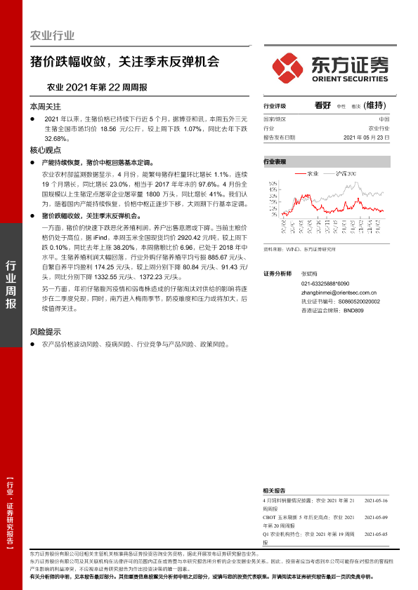 【东方证券】【20210523】农业2021年第22周周报:猪价跌幅收敛,关注季末反弹机会-8页