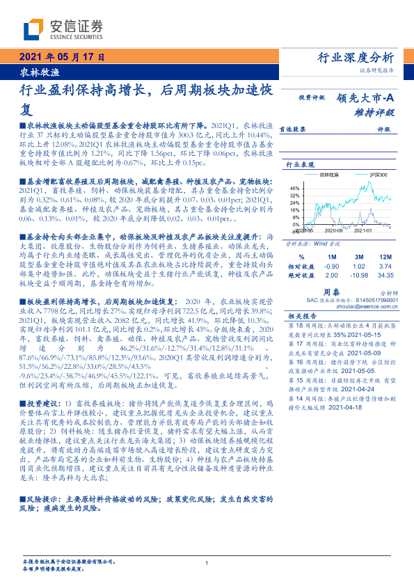 【安信证券】【20210517】农林牧渔行业深度分析:行业盈利保持高增长,后周期板块加速恢复-23页