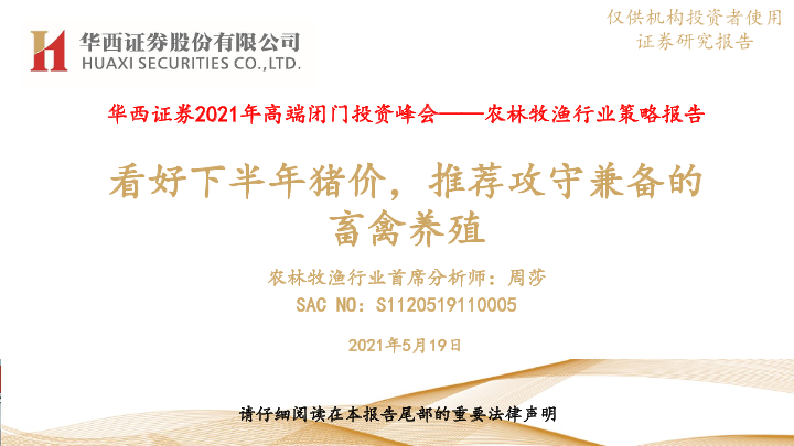 【华西证券】【20210519】2021年高端闭门投资峰会:农林牧渔行业策略报告:看好下半年猪价,推荐攻守兼备的畜禽养殖-24页