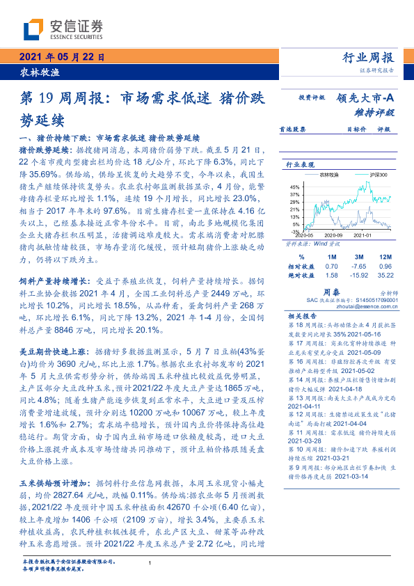 【安信证券】【20210522】20210522-安信证券-农林牧渔行业第19周周报:市场需求低迷,猪价跌势延续-17页