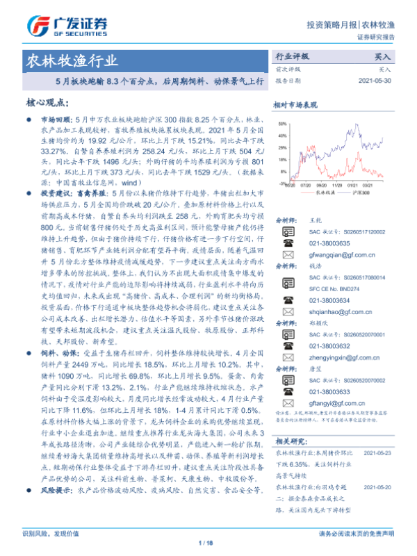 【广发证券】【20210530】20210530-广发证券-农林牧渔行业:5月板块跑输8.3个百分点,后周期饲料、动保景气上行-18页