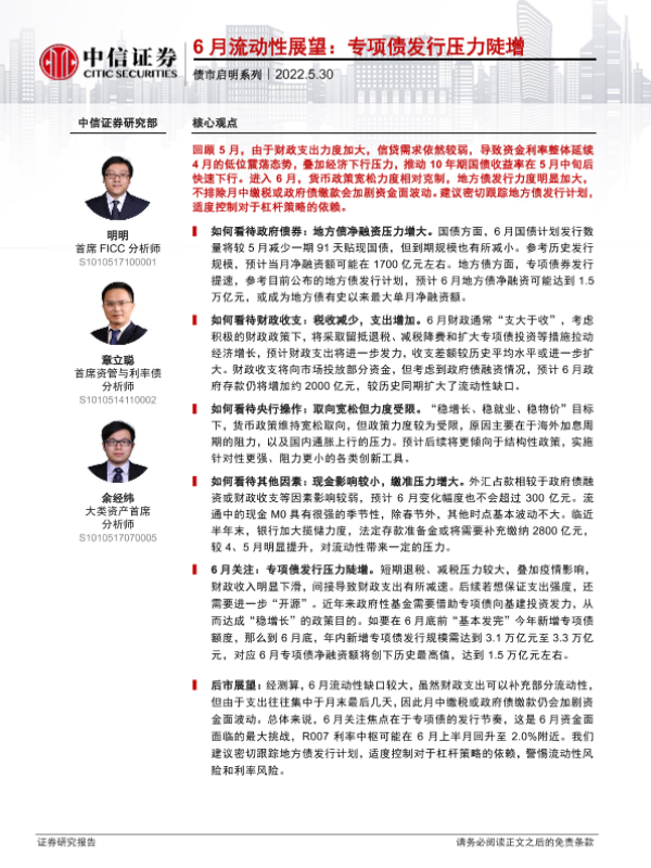 【中信证券】【20220530】债市启明系列:6月流动性展望,专项债发行压力陡增-36页
