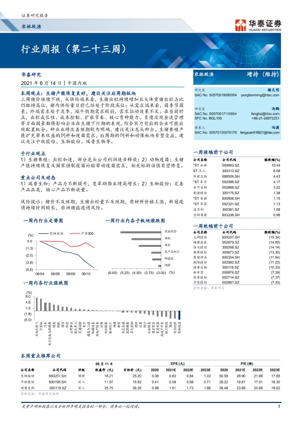 【华泰证券】【20210614】20210614-华泰证券-农林牧渔行业周报(第二十三周)-18页