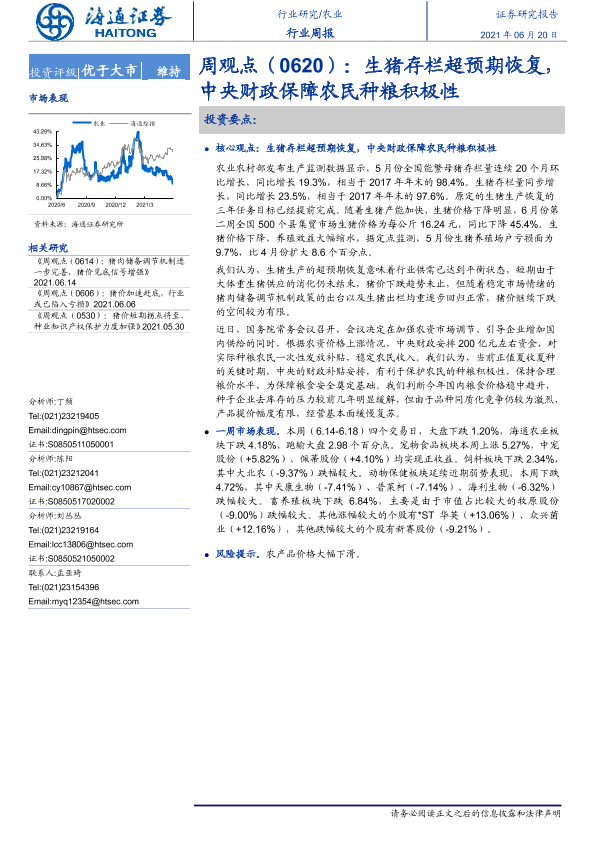 【海通证券】【20210620】20210620-海通证券-农业周观点:生猪存栏超预期恢复,中央财政保障农民种粮积极性-4页