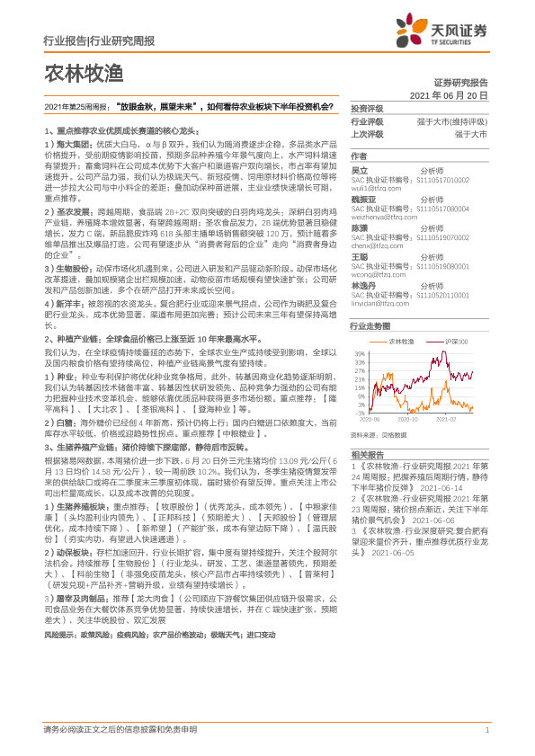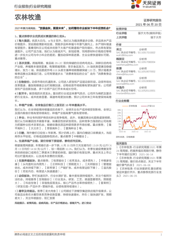 【天风证券】【20210620】20210620-天风证券-农林牧渔2021年第25周周报:“放眼金秋,展望未来”,如何看待农业板块下半年投资机会?-14页