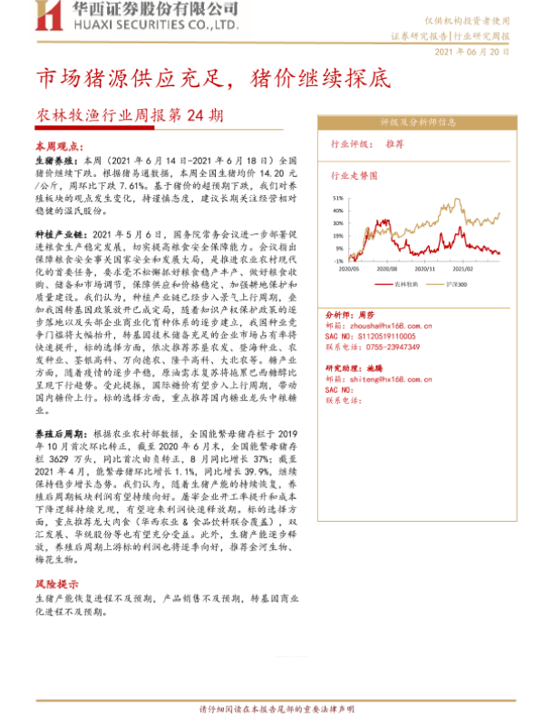 【华西证券】【20210620】农林牧渔行业周报第24期:市场猪源供应充足,猪价继续探底-23页