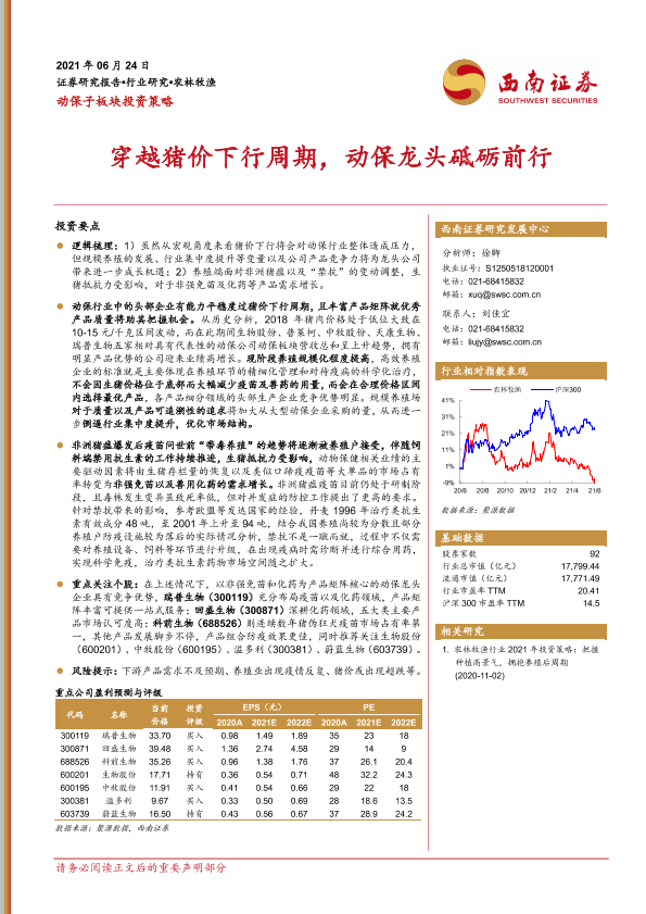【西南证券】【20210624】动保子板块投资策略:穿越猪价下行周期,动保龙头砥砺前行-19页
