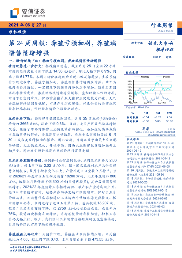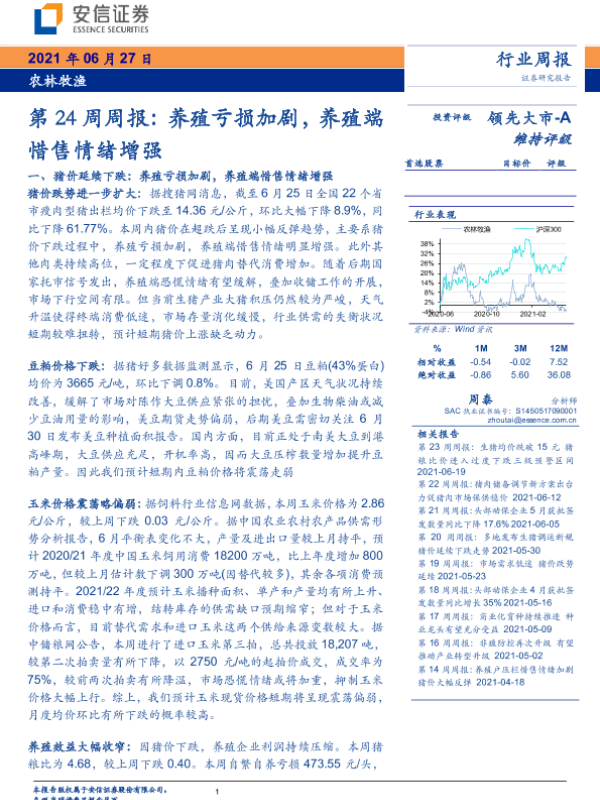 【安信证券】【20210627】20210627-安信证券-农林牧渔第24周周报:养殖亏损加剧,养殖端惜售情绪增强-18页