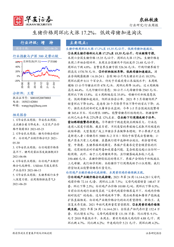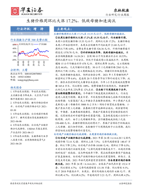 【华安证券】【20210626】20210626-华安证券-农林牧渔行业周报:生猪价格周环比大涨17.2%,低效母猪加速淘汰-38页