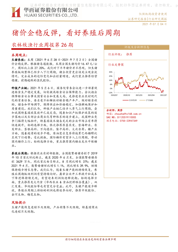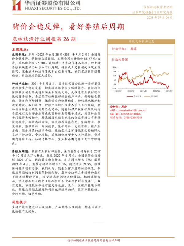 【华西证券】【20210704】农林牧渔行业周报第26期:猪价企稳反弹,看好养殖后周期-23页