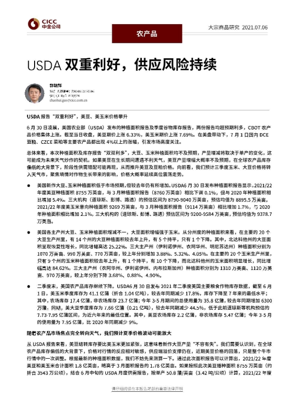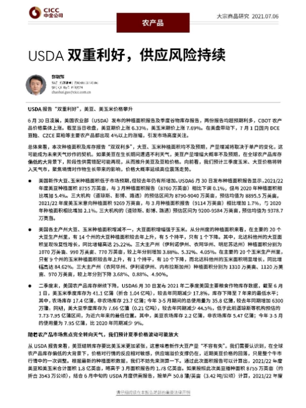 【中金公司】【20210706】农产品:USDA双重利好,供应风险持续-9页