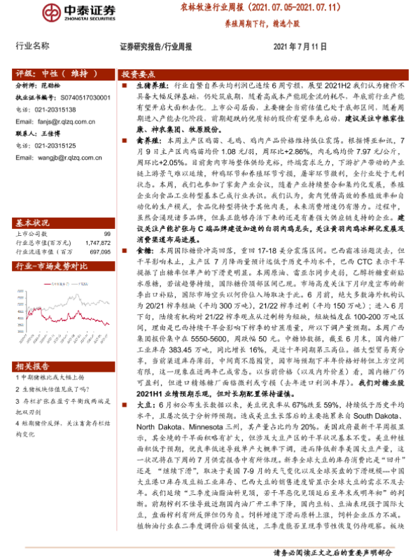 【中泰证券】【20210711】20210711-中泰证券-农林牧渔行业周报:养殖周期下行,精选个股-16页