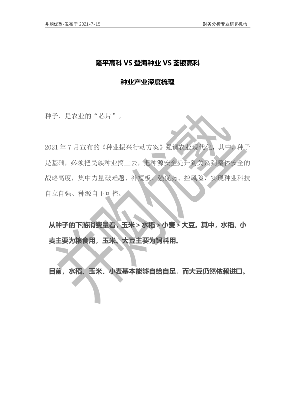 【并购优塾】【20210715】20210715-并购优塾-种业产业深度梳理:隆平高科VS登海种业VS荃银高科-28页