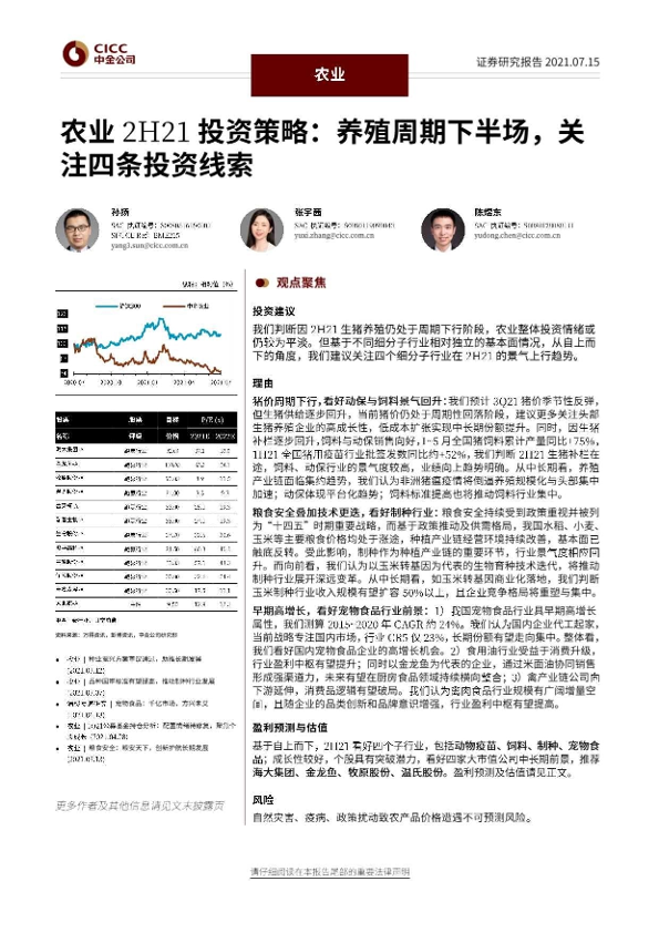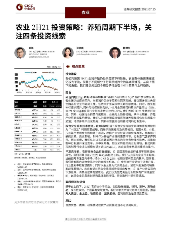 【中金公司】【20210715】农业2H21投资策略:养殖周期下半场,关注四条投资线索-25页