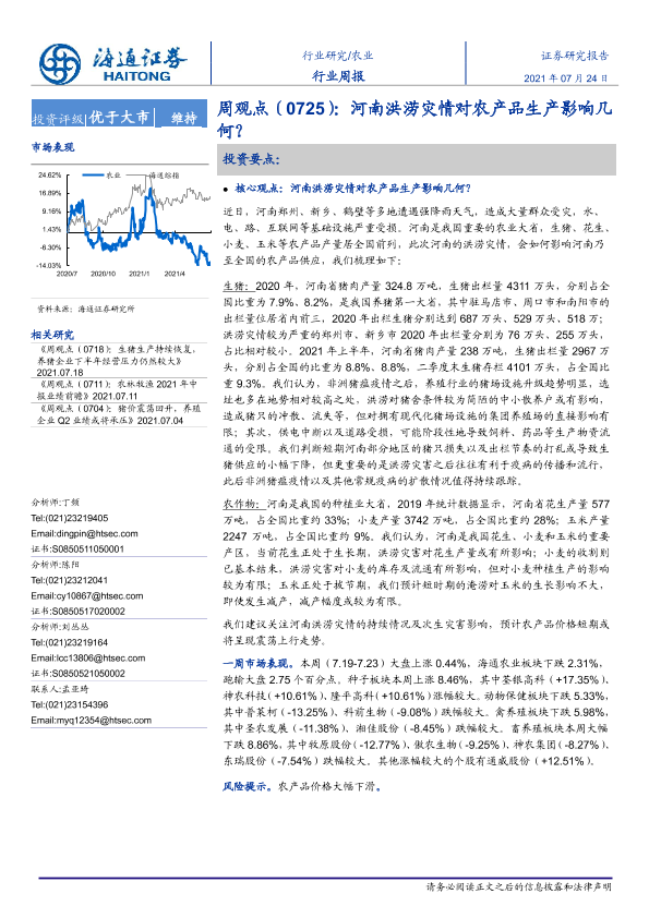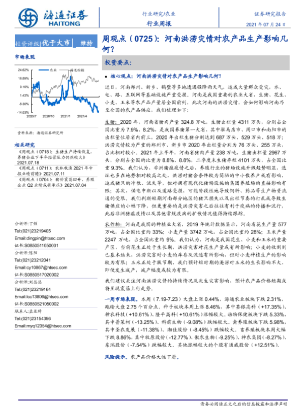 【海通证券】【20210724】20210724-海通证券-农业周观点:河南洪涝灾情对农产品生产影响几何?-4页