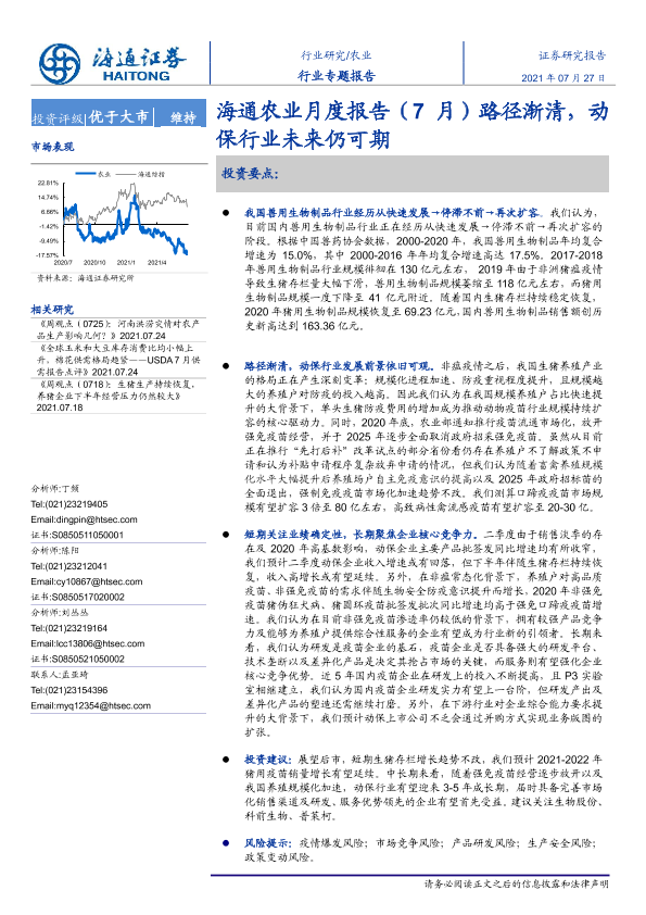 【海通证券】【20210727】海通农业月度报告(7月):路径渐清,动保行业未来仍可期-20页