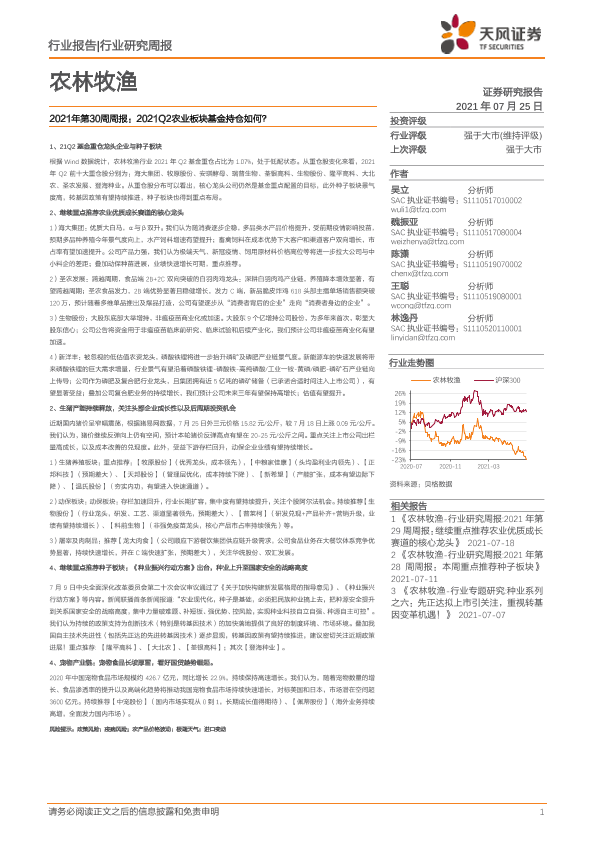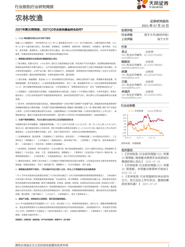 【天风证券】【20210725】2021年第30周周报:2021Q2农业板块基金持仓如何?-14页