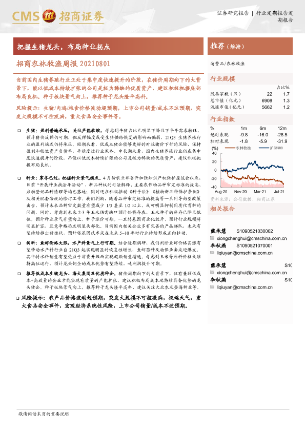 【海通证券】【20210801】招商农林牧渔周报:把握生猪龙头,布局种业拐点-8页