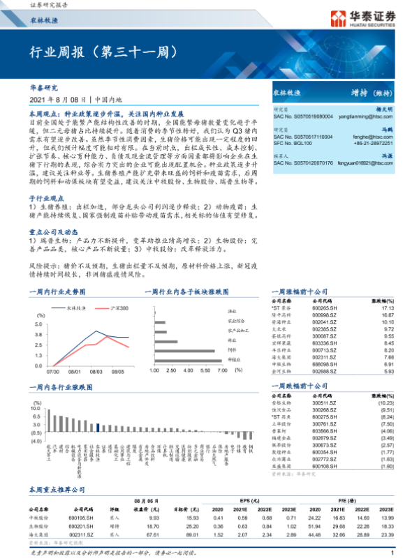 【华泰证券】【20210808】20210808-华泰证券-农林牧渔行业周报(第三十一周)-19页