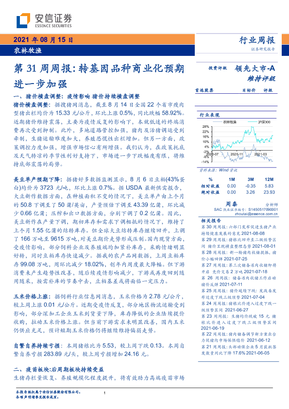 【安信证券】【20210815】农林牧渔行业第31周周报:转基因品种商业化预期进一步加强-17页