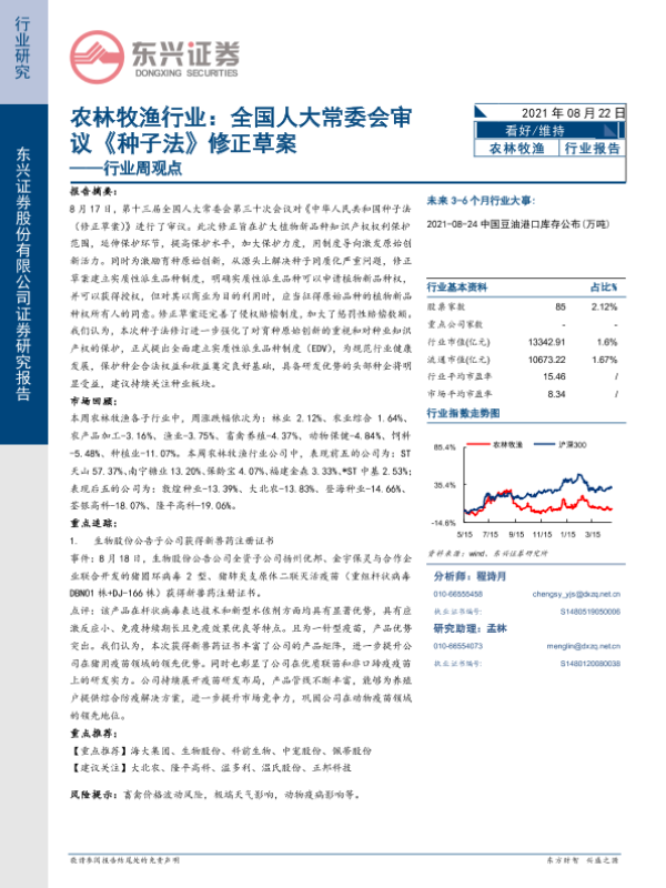 【东兴证券】【20210822】农林牧渔行业周观点:全国人大常委会审议《种子法》修正草案-13页