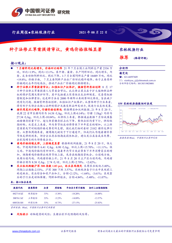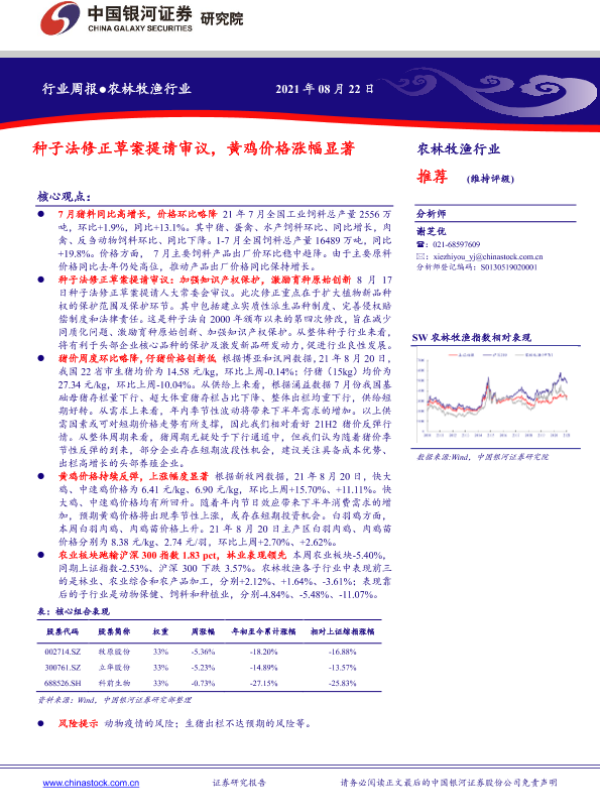 【银河证券】【20210822】20210822-中国银河-农林牧渔行业周报:种子法修正草案提请审议,黄鸡价格涨幅显著-17页