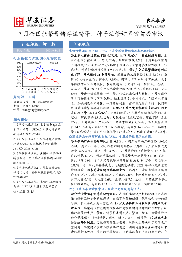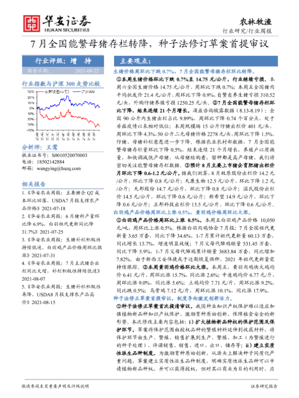 【华安证券】【20210822】20210822-华安证券-农林牧渔行业周报:7月全国能繁母猪存栏转降,种子法修订草案首提审议-38页