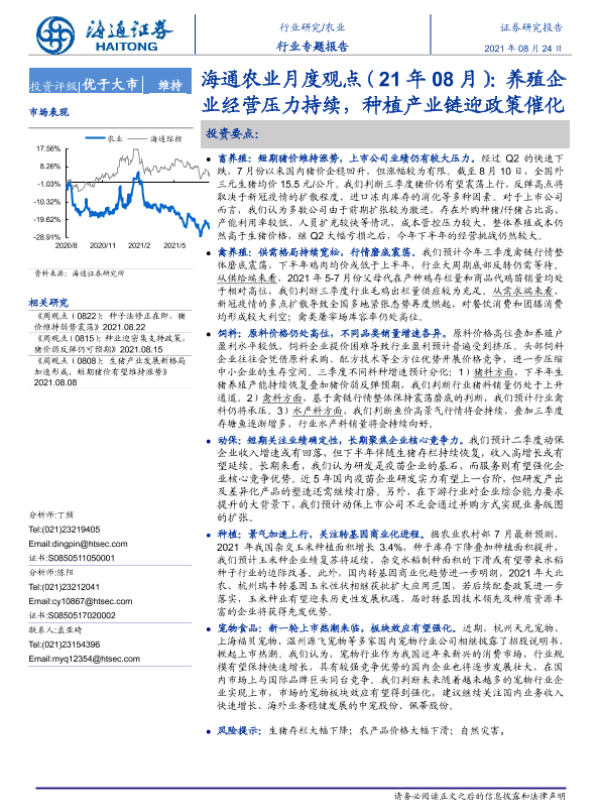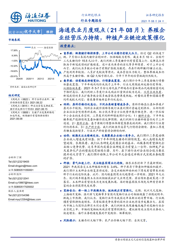 【海通证券】【20210824】海通农业月度观点(21年08月):养殖企业经营压力持续,种植产业链迎政策催化-20页