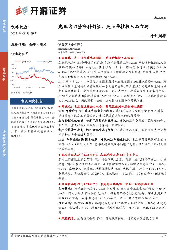 【开源证券】【20210829】农林牧渔行业周报:先正达拟登陆科创板,关注种植投入品市场-18页
