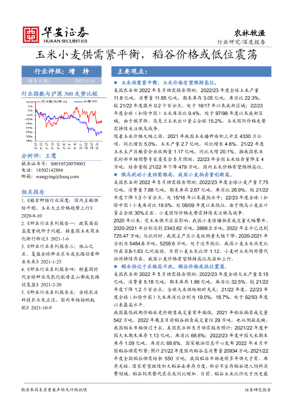 【华安证券】【20220531】农林牧渔行业深度报告:玉米小麦供需紧平衡,稻谷价格或低位震荡-35页