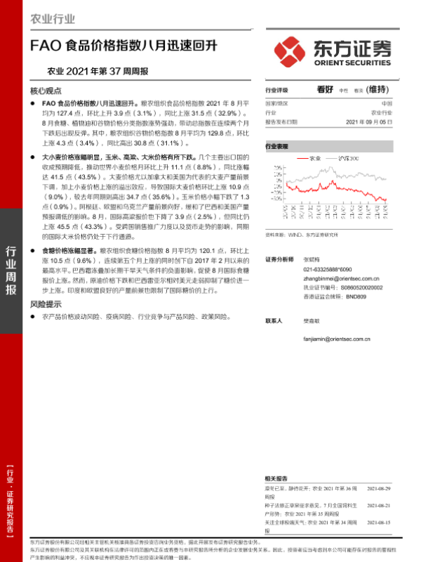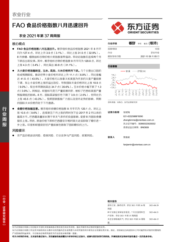 【东方证券】【20210905】农业2021年第37周周报:FAO食品价格指数八月迅速回升-9页