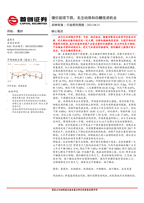 【首创证券】【20210831】20210831-首创证券-农林牧渔行业研究周报:猪价延续下跌,关注动保和白糖投资机会-22页