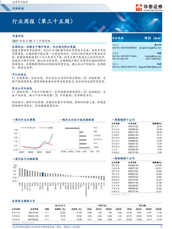 【华泰证券】【20210905】20210905-华泰证券-农林牧渔行业周报(第三十五周):秋粮生产稳中向好,关注国内种业发展-19页