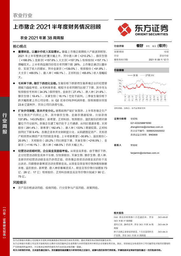 【东方证券】【20210912】农业2021年第38周周报:上市猪企2021半年度财务情况回顾-9页