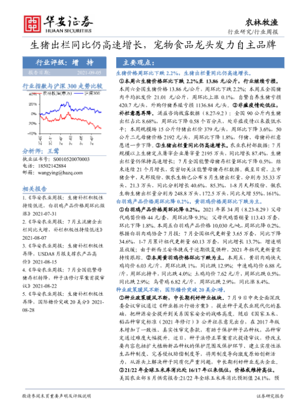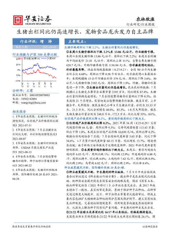 【华安证券】【20210905】20210905-华安证券-农林牧渔行业周报:生猪出栏同比仍高速增长,宠物食品龙头发力自主品牌-38页