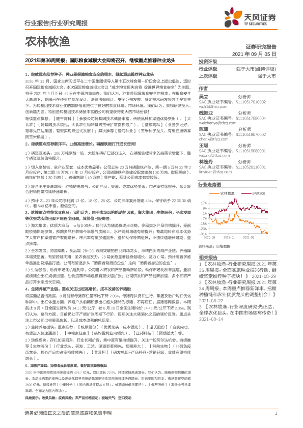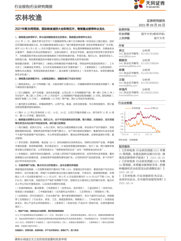 【天风证券】【20210905】农林牧渔行业2021年第36周周报:国际粮食减损大会即将召开,继续重点推荐种业龙头-14页