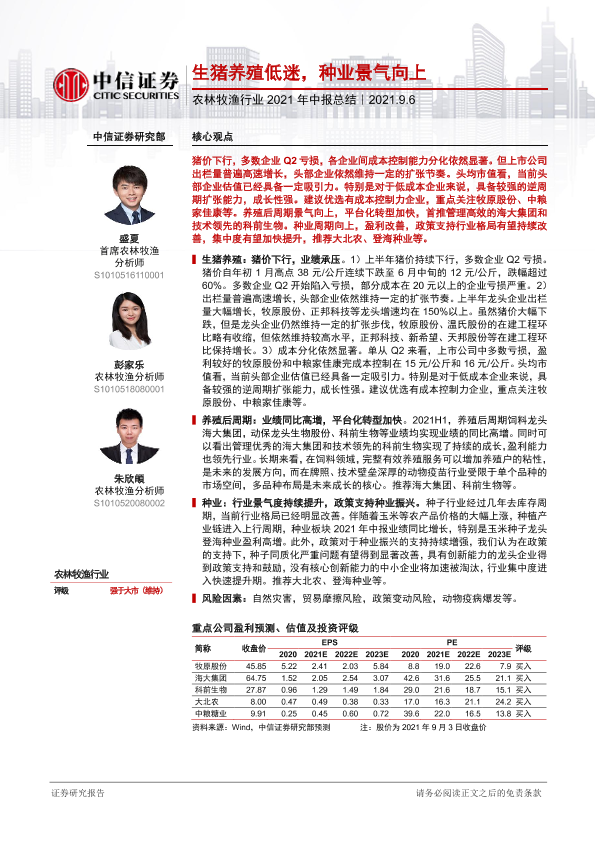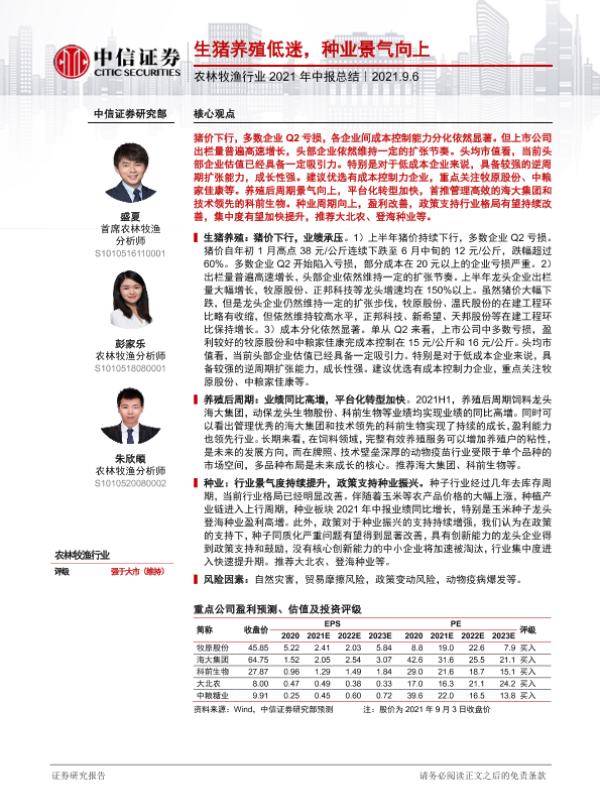【中信证券】【20210906】农林牧渔行业2021年中报总结:生猪养殖低迷,种业景气向上-18页
