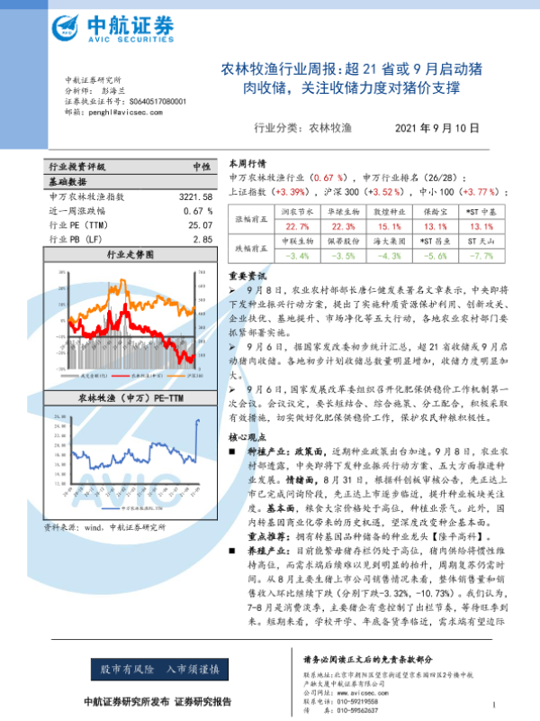 【中航证券】【20210910】农林牧渔行业周报:超21省或9月启动猪肉收储,关注收储力度对猪价支撑-9页