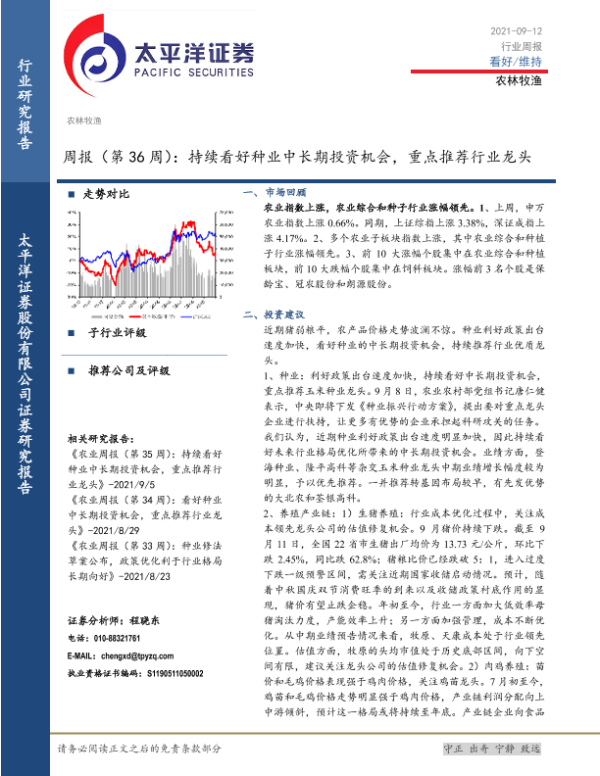 【太平洋证券】【20210912】20210912-太平洋-农林牧渔周报(第36周):持续看好种业中长期投资机会,重点推荐行业龙头-15页