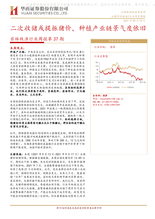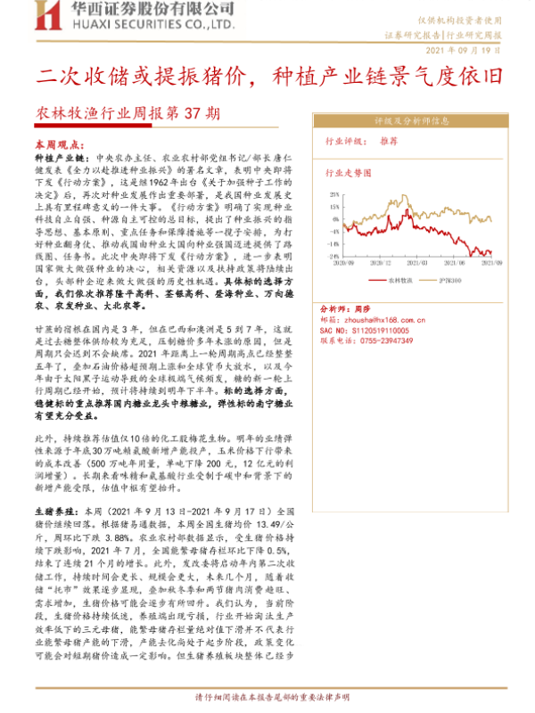 【华西证券】【20210919】农林牧渔行业周报第37期:二次收储或提振猪价,种植产业链景气度依旧-23页