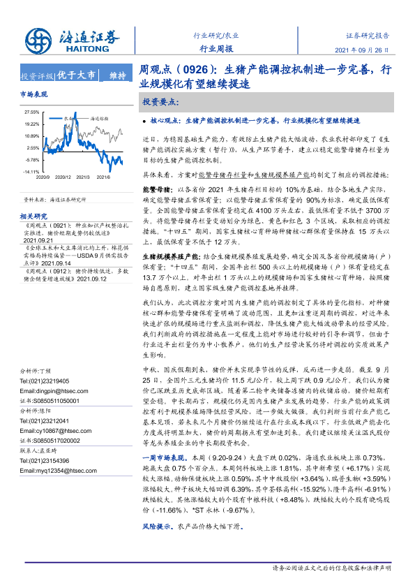【海通证券】【20210926】20210926-海通证券-农业周观点:生猪产能调控机制进一步完善,行业规模化有望继续提速-3页