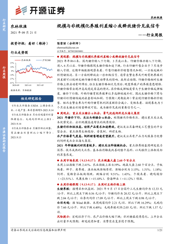 【开源证券】【20210921】农林牧渔行业周报:规模与非规模化养殖利差缩小或释放猪价见底信号-21页